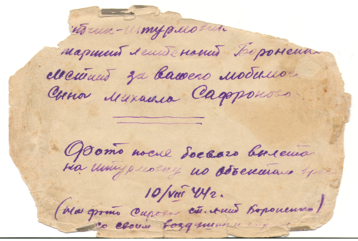 "летчик-штурмовик старший лейтенант Бороненко мстит за вашего любимого сына Михаила Сафронова