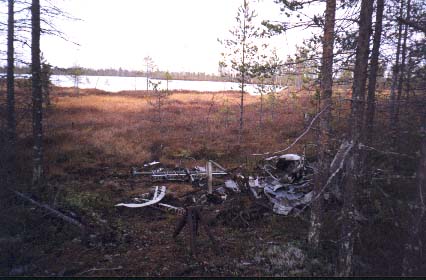 Эти два самолета прятались от меня лет семь. Дважды в 91 и 92 я летал на Ми-8 на эти ламбины и дважды не мог их найти - проводник говорил: "один на берегу, а от другого лыжи торчат посередине ламбы - найдете сами", и отказывался лететь со мной.