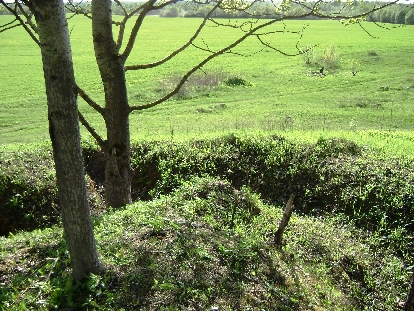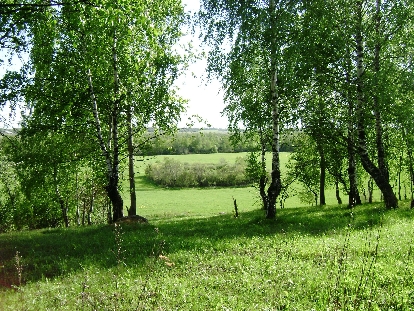 Вид из немецкой пулеметной ячейки. В поле видна заросшая воронка, тогда это было единственное укрытие для атакующих…